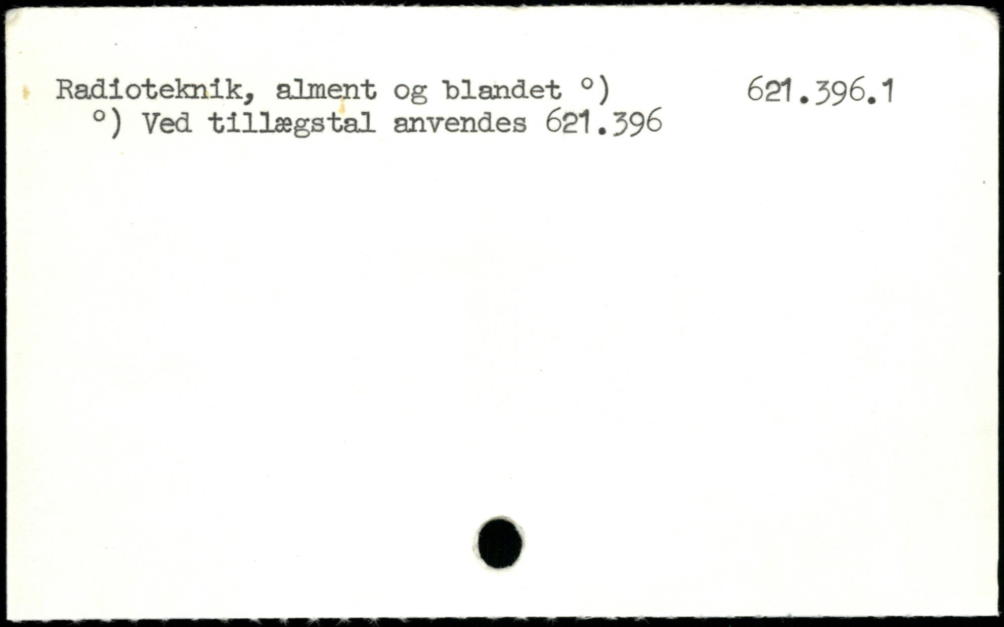 Radioteknik, alment og blandet .) 621.396.1 0) Ved tillægstal anvendes 621.396