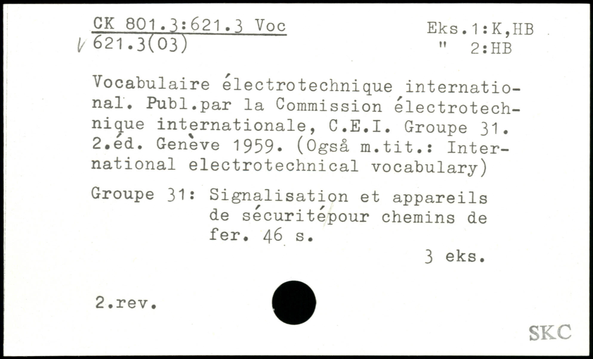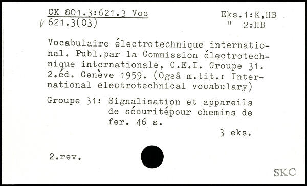 Vocabulaire electrotechnique international. Publ.par la Commission électrotechnique internationale, C.E.I. Groupe 31.