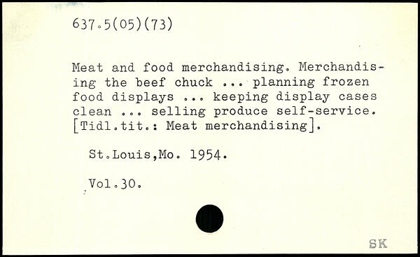 Meat and food merchandising. Merchandising the beef chuck ... planning frozen food displays ... keeping display cases clean ... selling produce self-service. [Tidl.tit.: Meat merchandising], St.LouiSjMo. 1954,