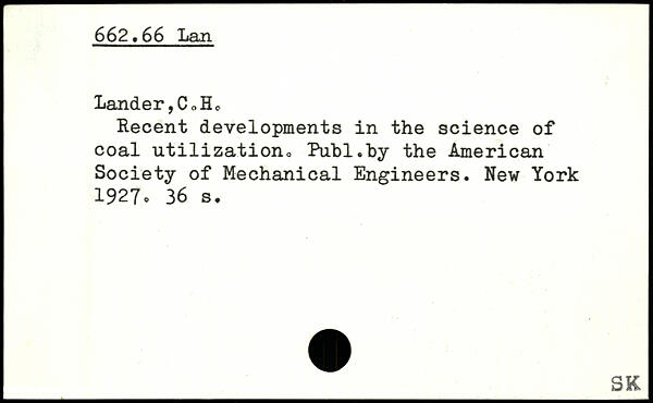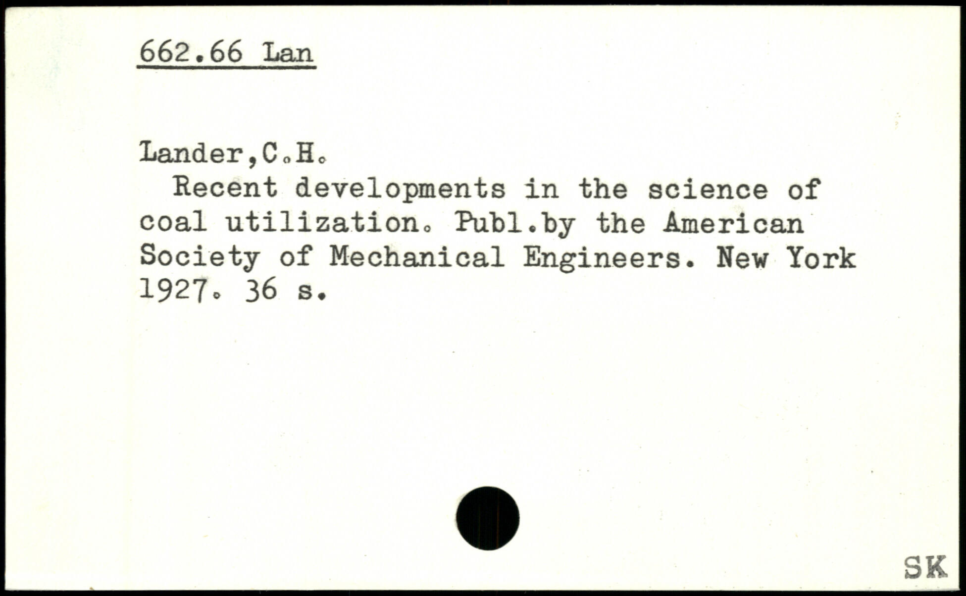 Lander,CoHe Recent developments in the science of coal utilization. Publ.hy the American Society of Mechanical Engineers.