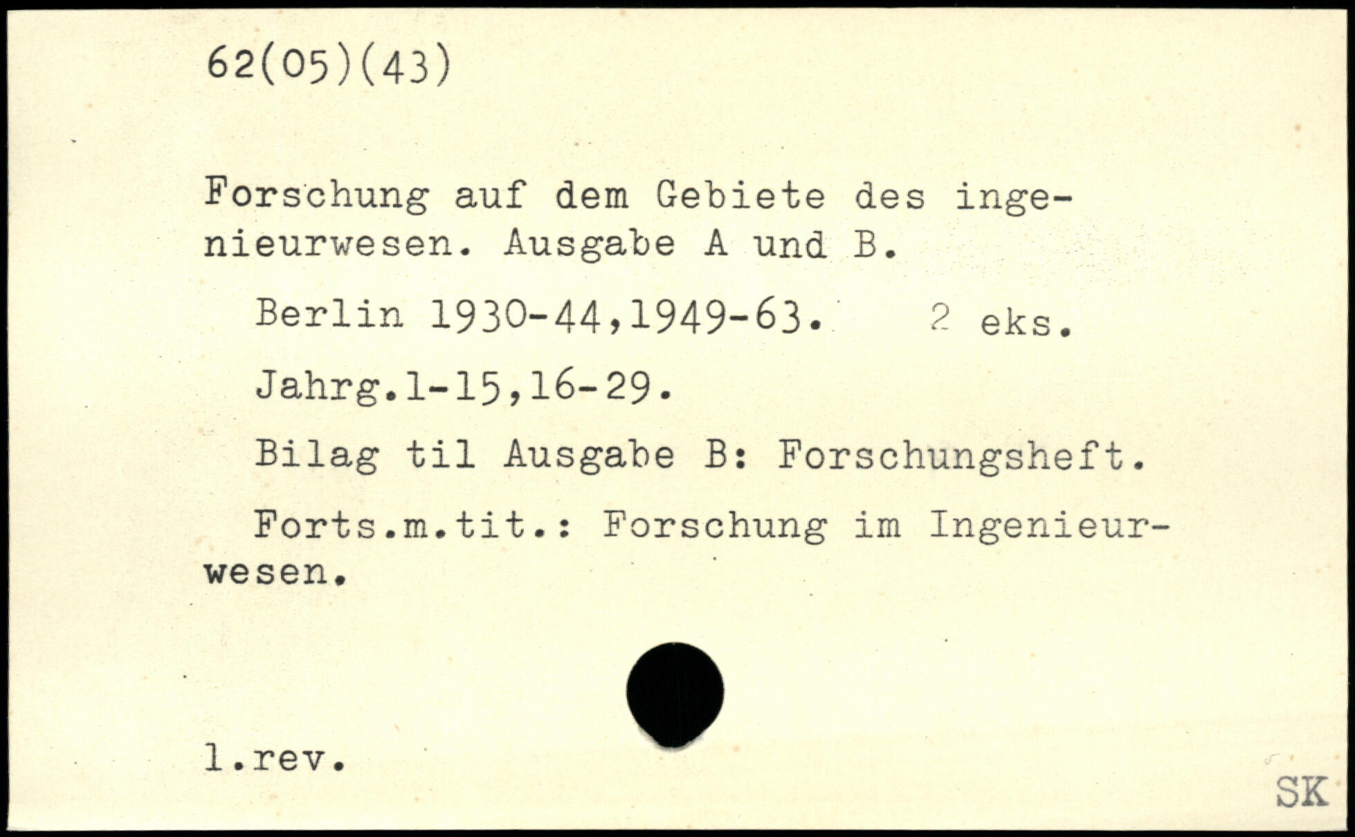 Forschung auf dem Gebiete des ingenieurwesen. Ausgabe A und B.