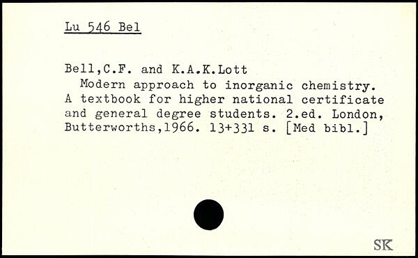 Modem approach to inorganic chemistry. A textbook for higher national certificate and general degree students.
