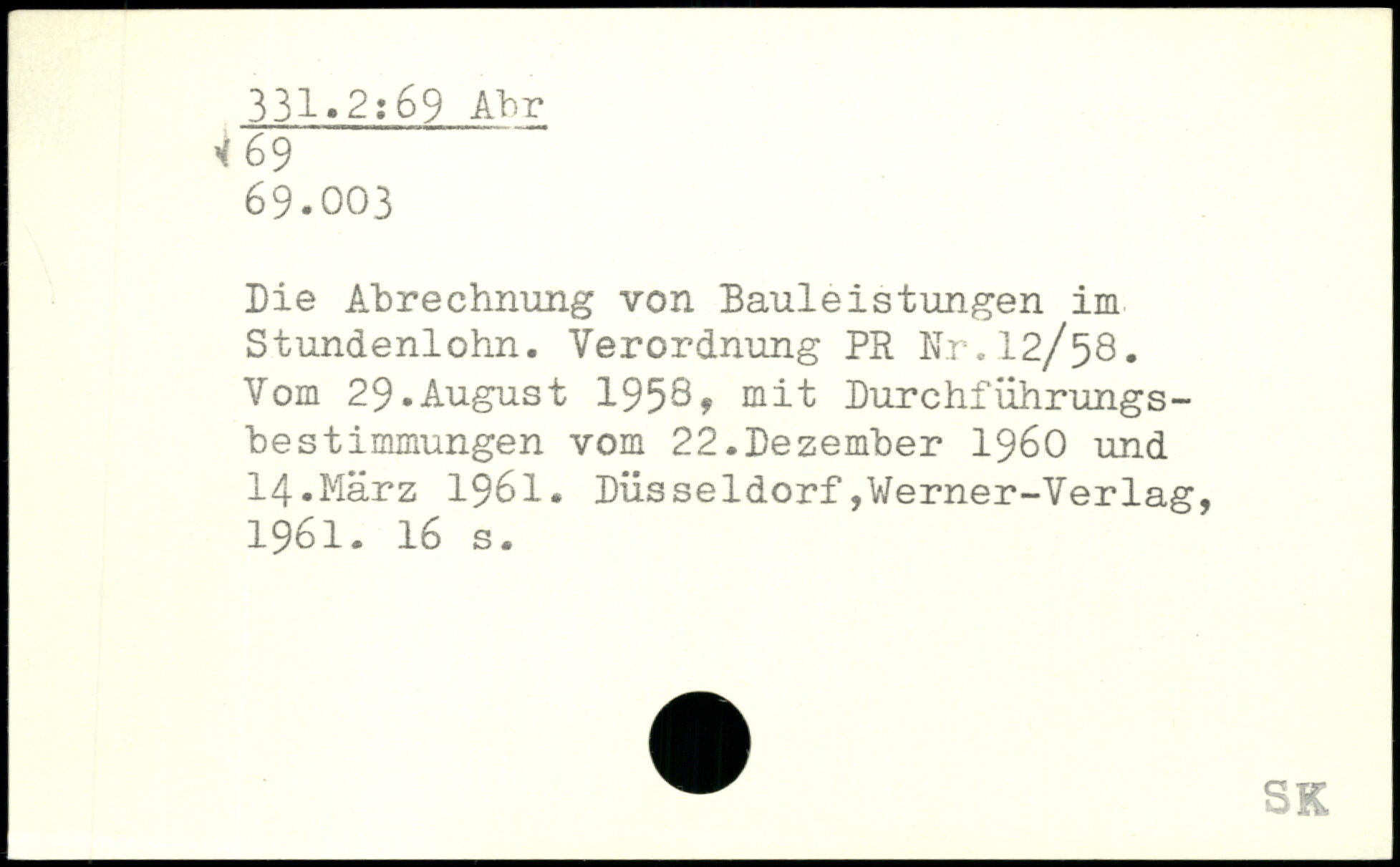 Die Abrechnung von Bauleistungen im Stundenlohn. Verordnung PR Nr.12/58. Vom 29.August 195Ö> mit Durch!'ührungs-bestimmungen vom 22.Dezember 1960 und 14.März 1961.