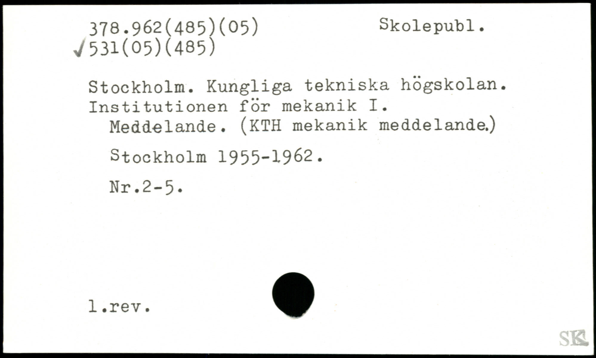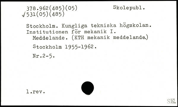 Stockholm. Kungliga tekniska högskolan. Institutionen för mekanik I. Meddelande. (KTH mekanik meddelande.)