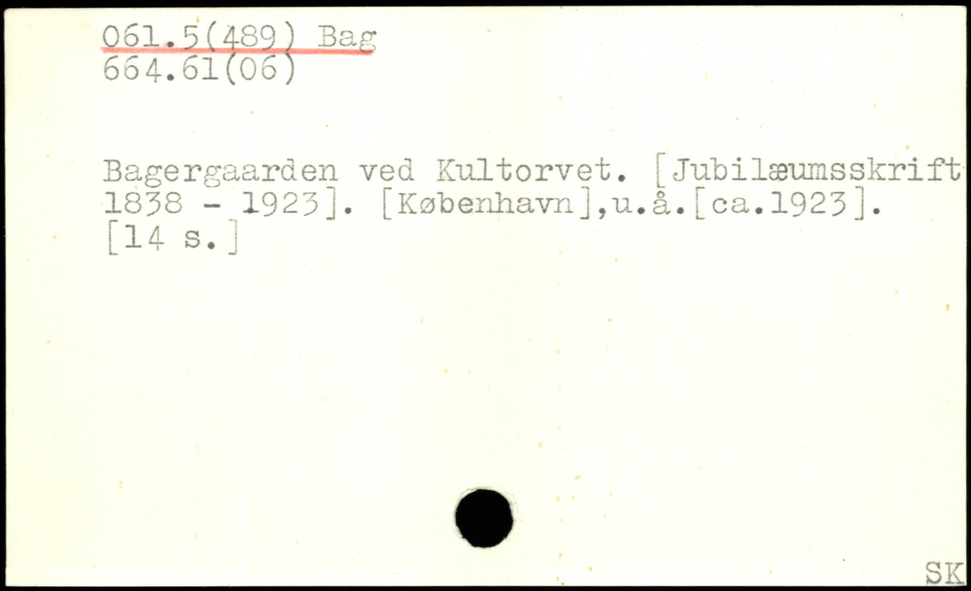 Bagergaarden ved Kiiltorvet. [Jubilæmnsskrift 1838 - 1923:. [København j ,u.å. [ca. 1923 ]. _ SK