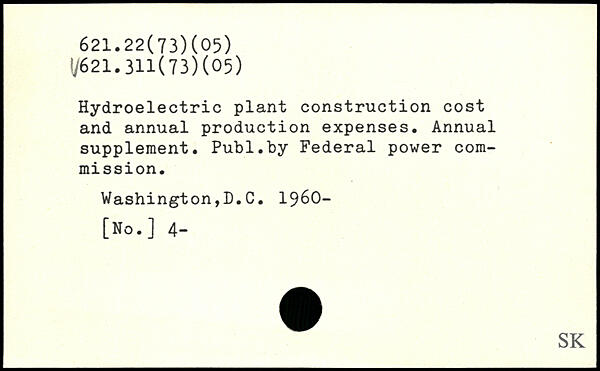 Hydroelectric plant construction cost and annual production expenses. Annual supplement.