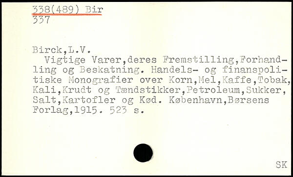 Vigtige Varer,deres Fremst1111ng,Forhandling og Beskatning. Handels- og finanspolitiske Monografier over Korn,Mel ,Kaffe ,Tobak, Kali,Krudt og Tændstikker,Petroleum,Sukker, Salt,Kartofler og Kød.