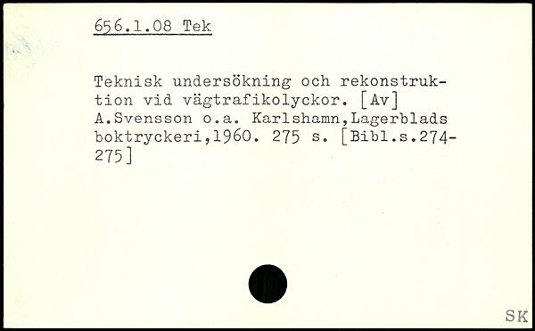 Teknisk undersökning och rekonstruktion vid vägtrafikolyckor. [Av] A.Svensson o.a.