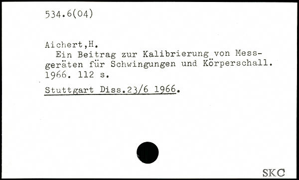 Ein Beitrag zur Kalibrierungen Messgeräten für Schwingungen und Körperschall. 1966.