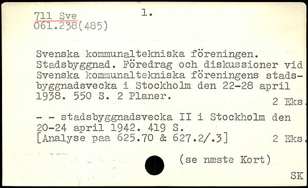Svenska kommunaltekniska föreningen. Stadsbyggnad, föredrag och diskussioner vid Svenska kommunaltekniska föreningens stads-byggnadsvecka i Stockholm den 22-28 april 1938.