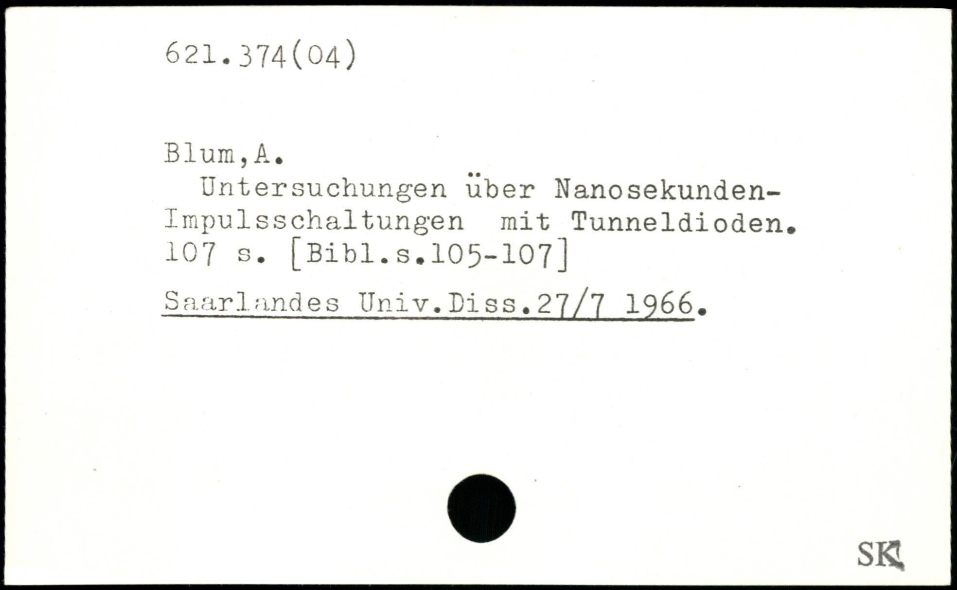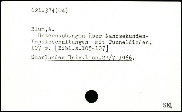 Untersuchungen über Nanosekunden-Impulsschaltungen mit Tunneldioden.