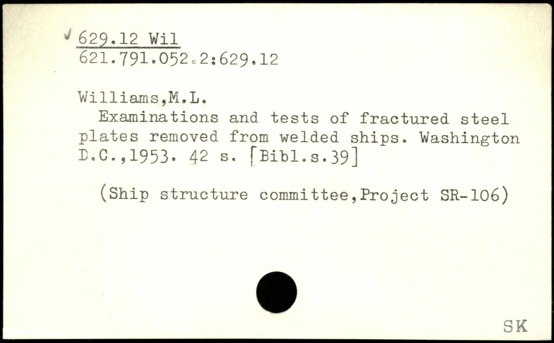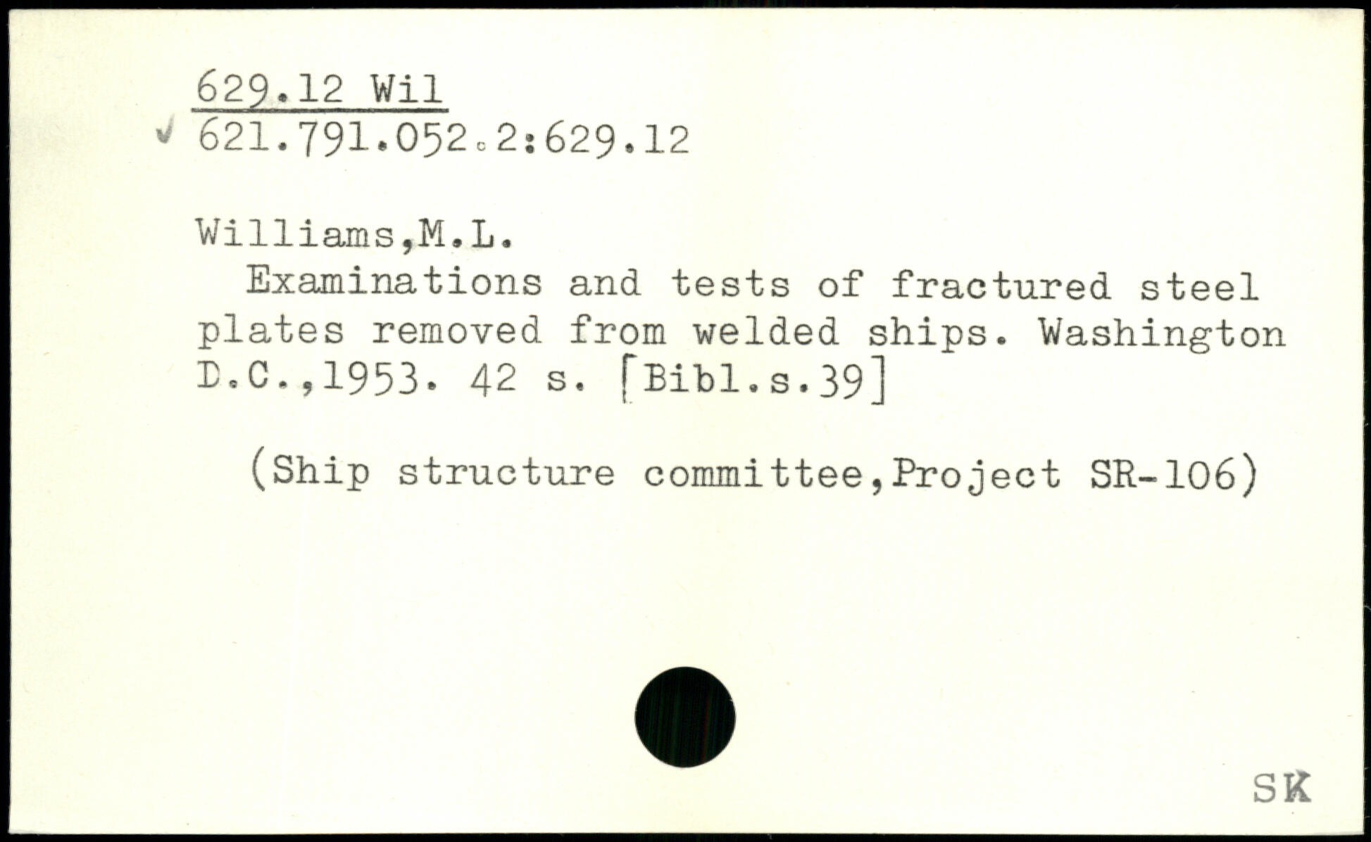 Examinations and tests of fractured steel plates removed from welded ships. Washington E.C.,1953.