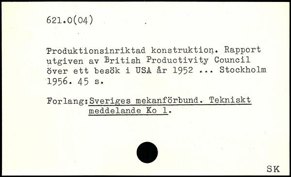 Produktionsinriktad konstruktion. Rapport utgiven av British Productivity Council över ett besök i USA år 1952 ...