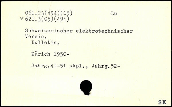 Schweizerischer elektrotechnischer Verein. Bulletin. Zürich 1950- Jahrg.41-51 ukpl., Jahrg.52-