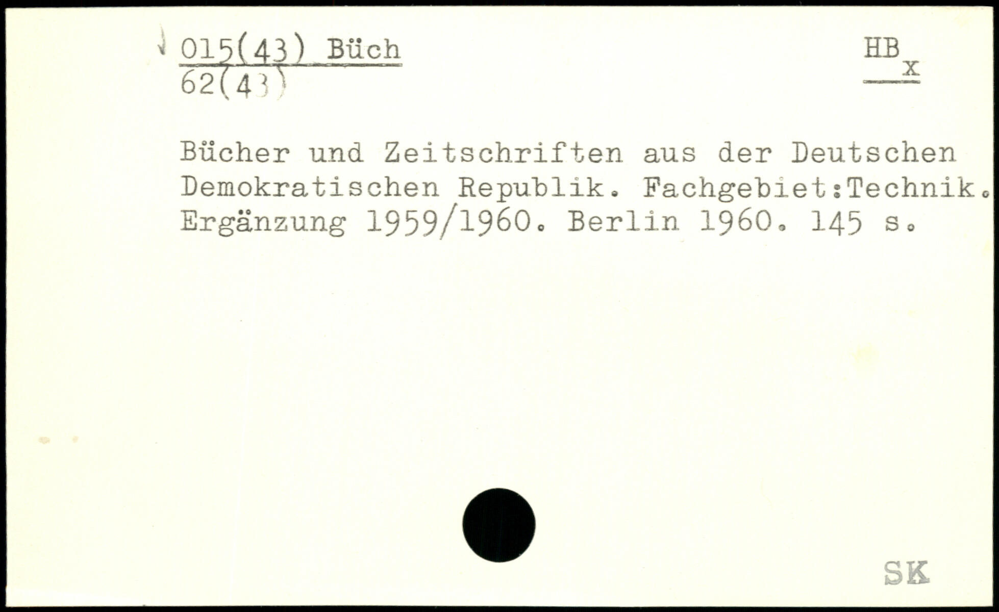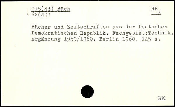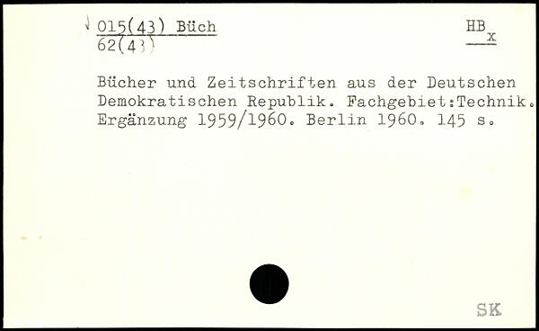 Bücher und. Zeitschriften aus der Deutschen Demokratischen Republik. Fachgebiet:Technik. Ergänzung 1959/1960®