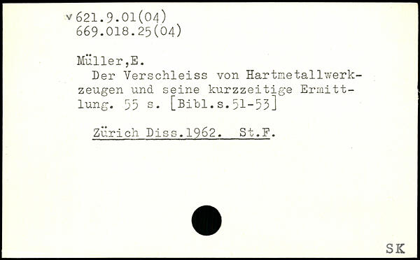 Der Verschleiss von Hartmetallwerkzeugen und seine kurzzeitige Ermittlung.