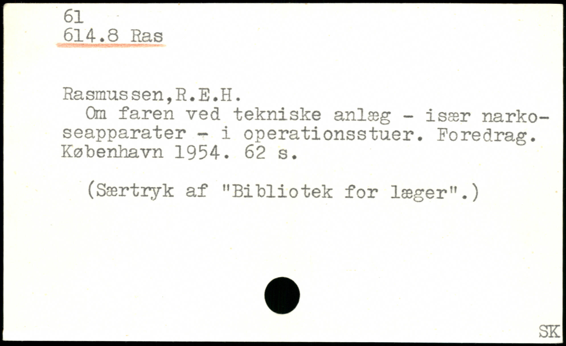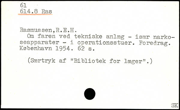 Om faren ved tekniske anlæg - især narkoseapparater - i operationsstuer. Foredrag.