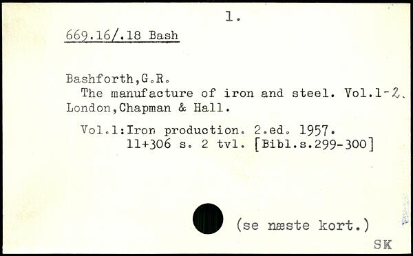 The manufacture of iron and steel. Vol.l~&% London,Chapman & Hall. Vol.l:Irpn production.