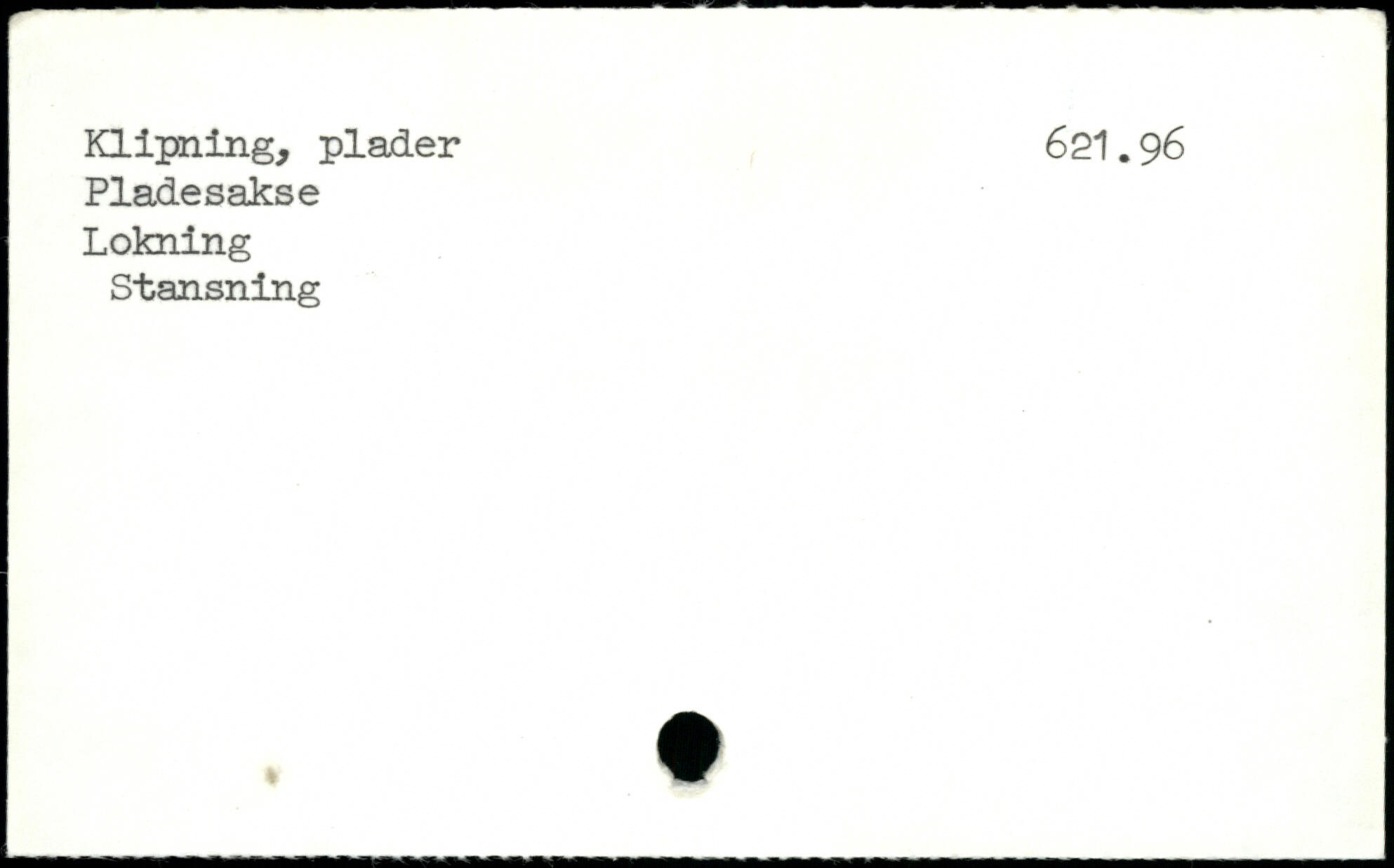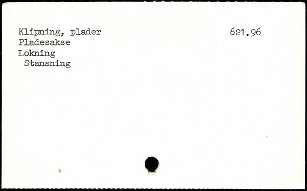 Klipning, plader 621.96 Pladesakse Lokning Stansning