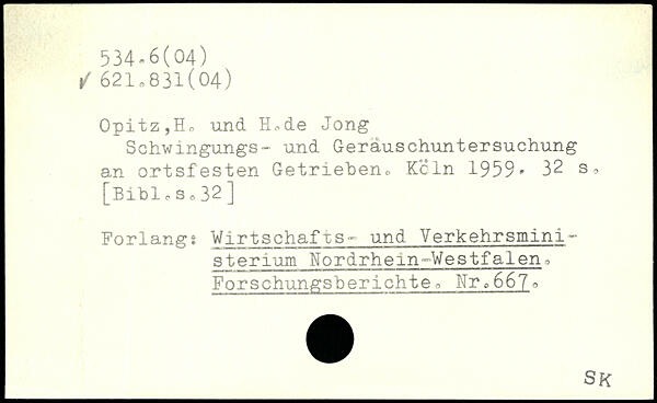 Opitz,Ho und Hnde Jong Sehwingungs- und Gerauschuntersuchung an ortsfesten Getriebene Kein 1959'