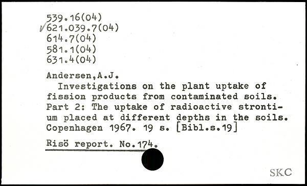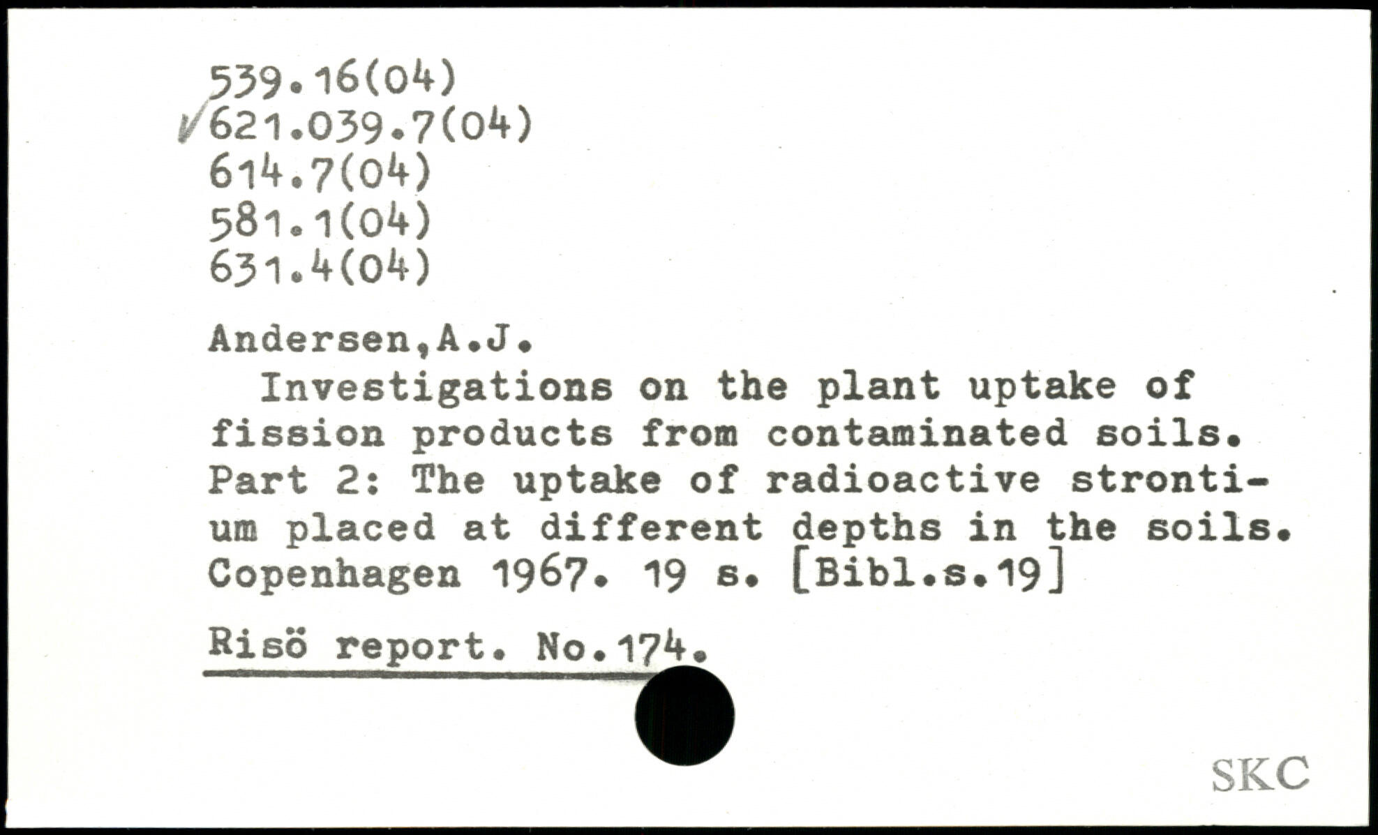Investigations on the plant uptake of fission products from contaminated soils. Part 2: The uptake of radioactive strontium placed at different depths in the soils. Copenhagen 19^7.