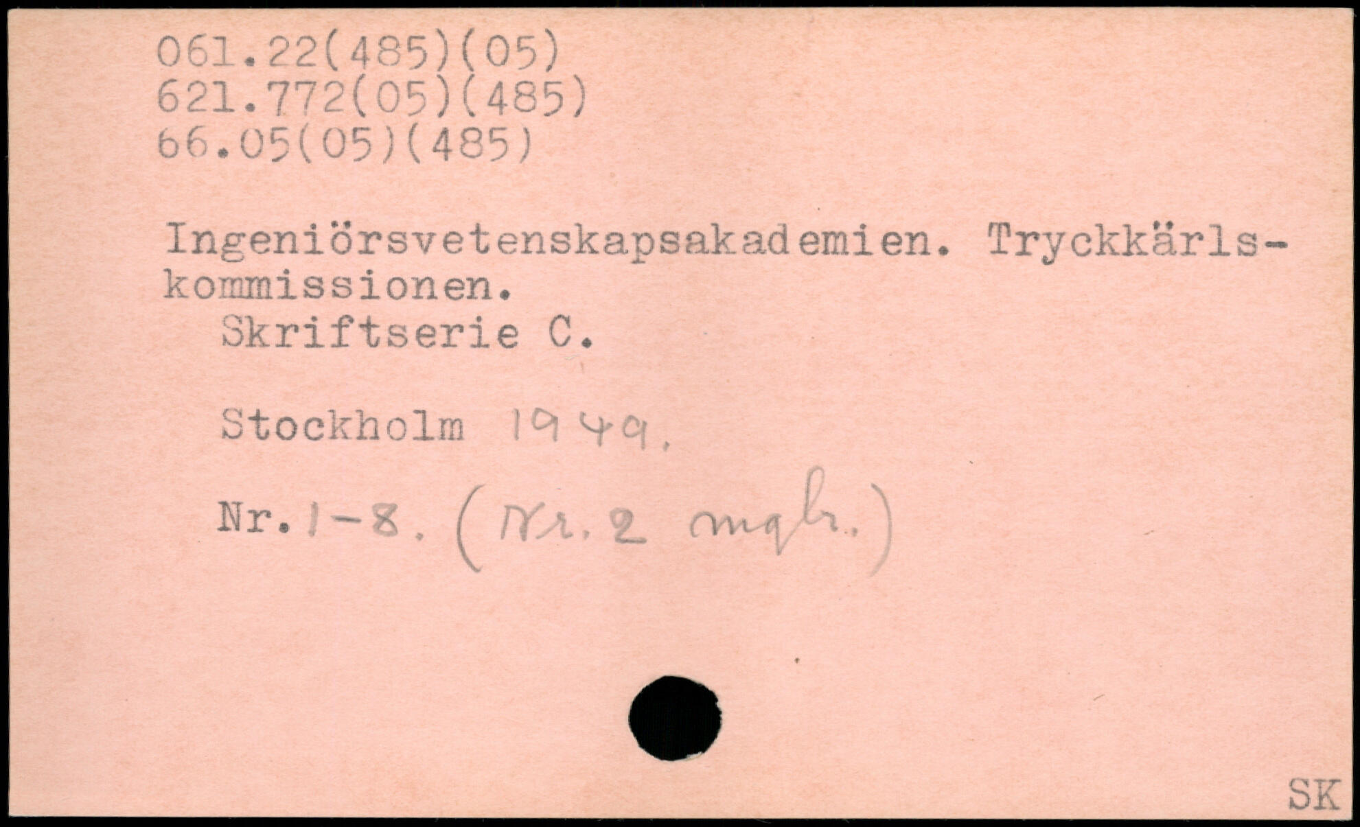 Ingeniörsvetenskapsakademien. Tryckkärls-kommissionen. Skriftserie C. Stockholm Kr.J-g. <y^\ )