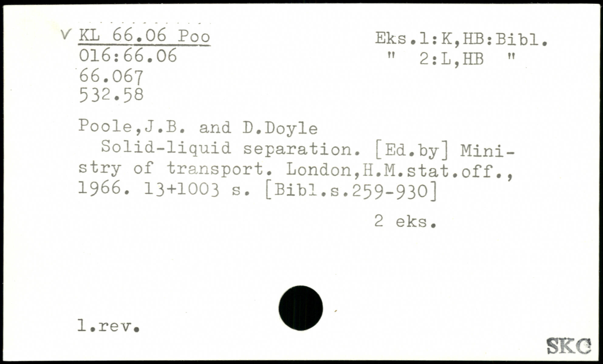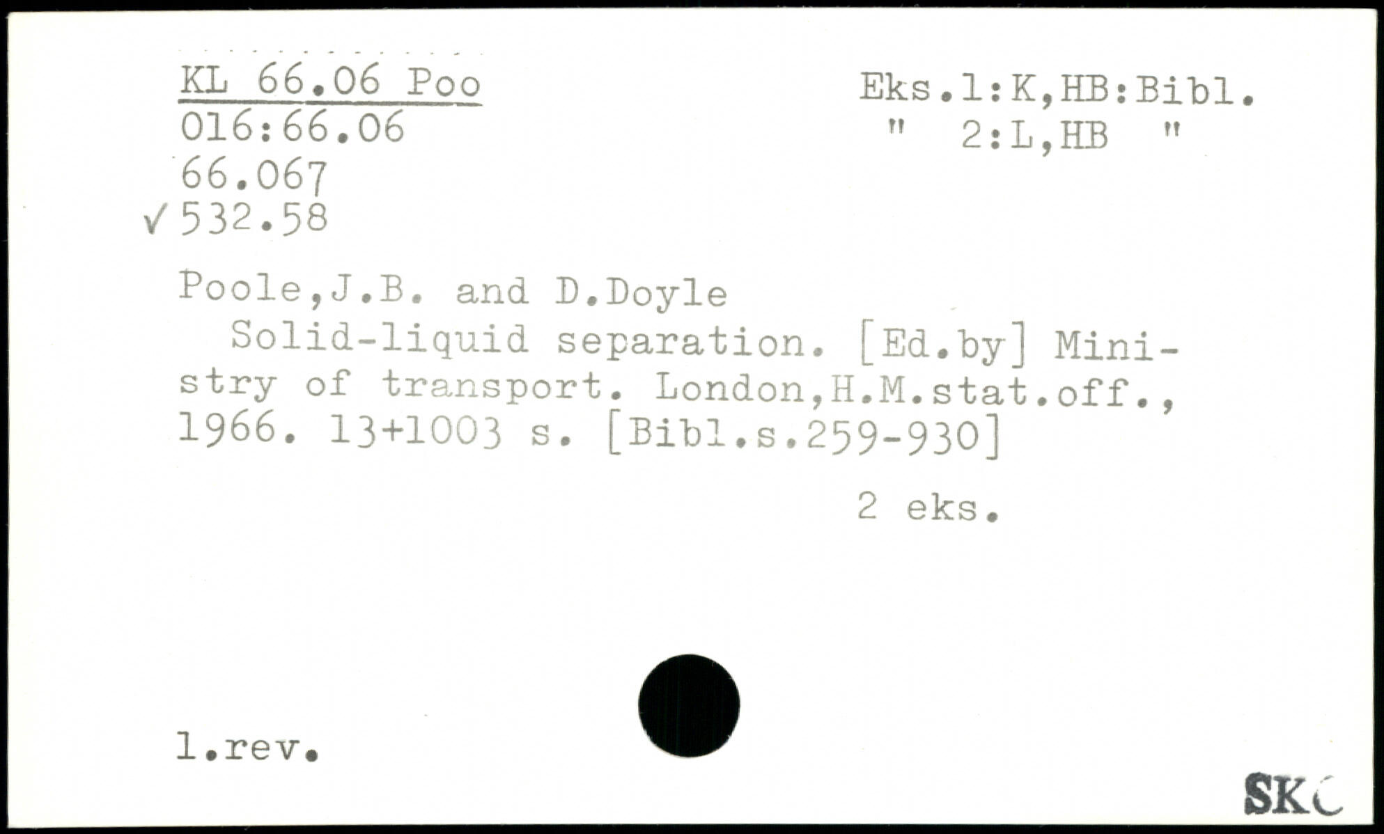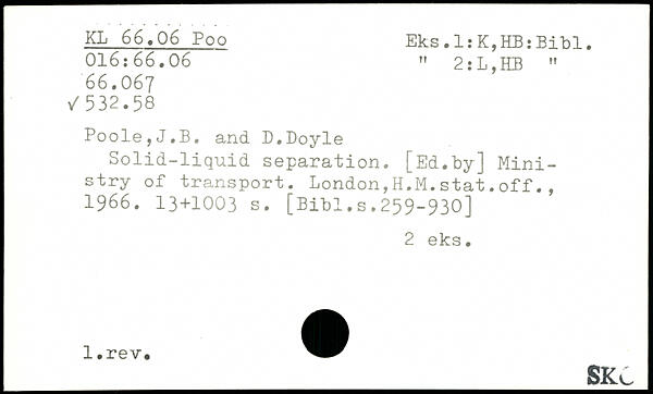 Solid-liquid separation. [Ed.by] Ministry of transport. London,H.M.stat.off., 1966.
