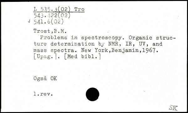 Problems in spectroscopy. Organic structure determination by NMR, IR, UV, and mass spectra.