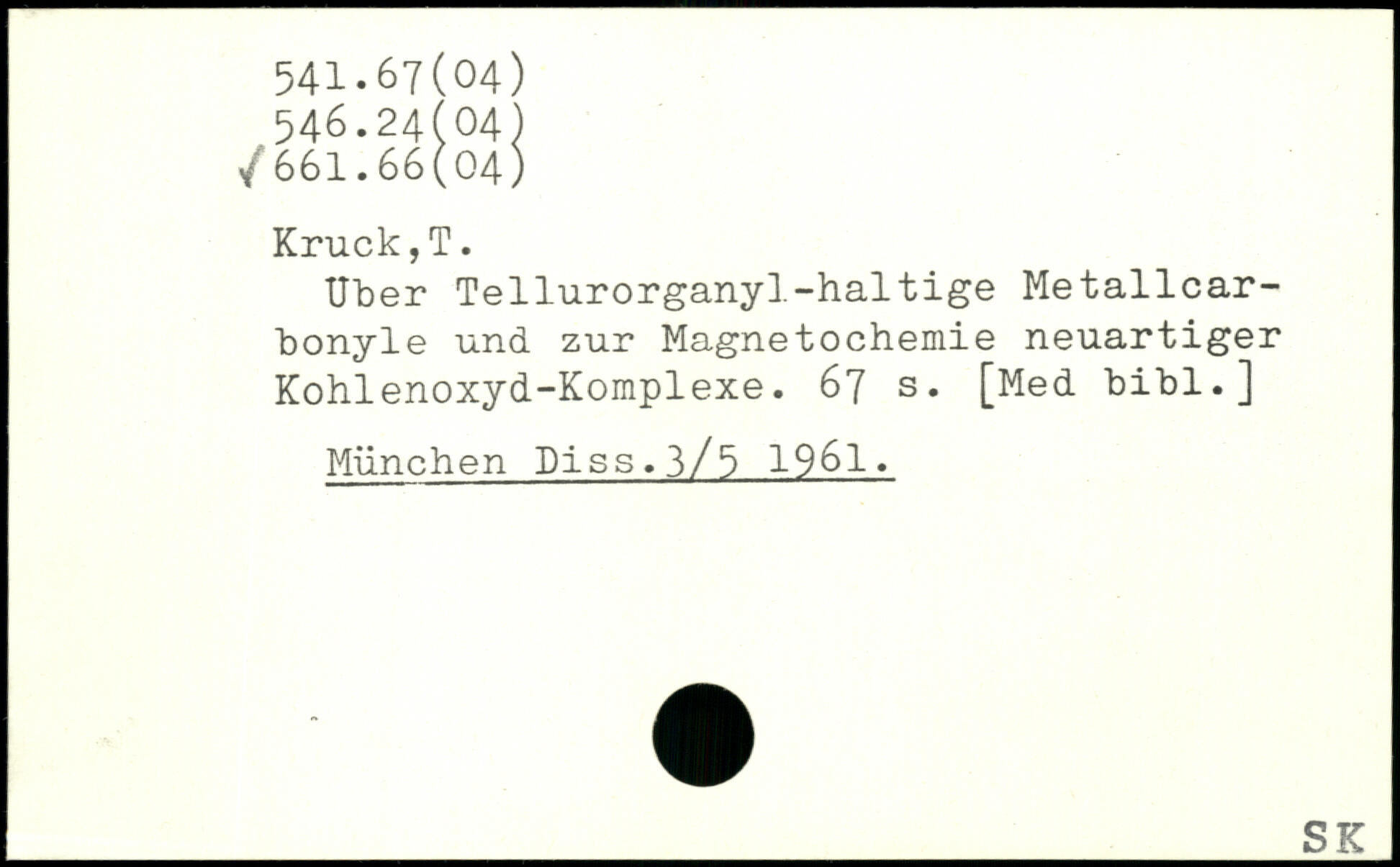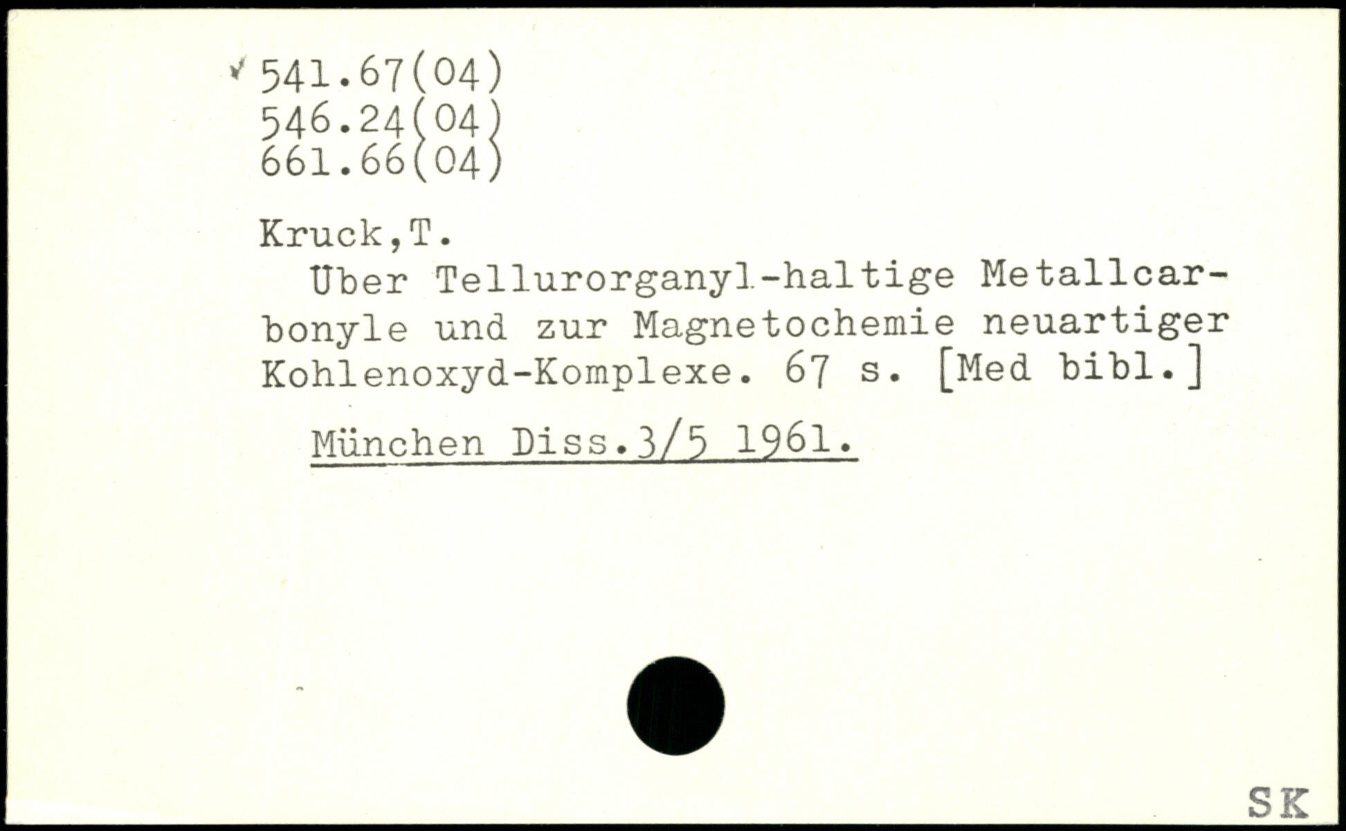 Uber Tellurorganyl-haltige Metallcar-bonyle und zur Magnetochemie neuartiger Kohlenoxyd-Komplexe.