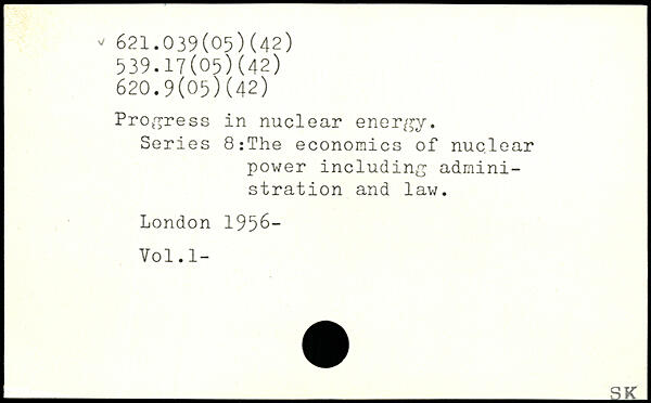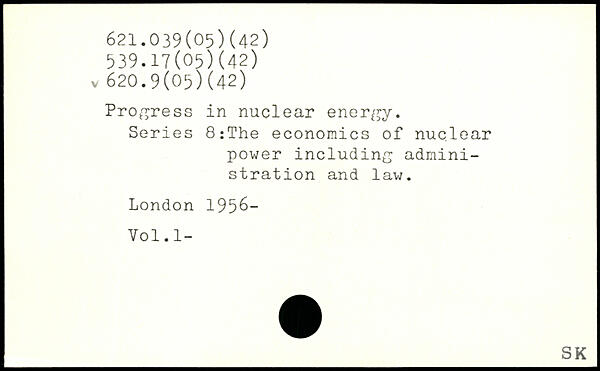 Progress in nuclear energy. Series 8:The economics of nuclear power including administration and law.