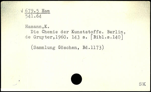 Die Chemie der Kunststoffe, Berlin, de Gruyter,1960.