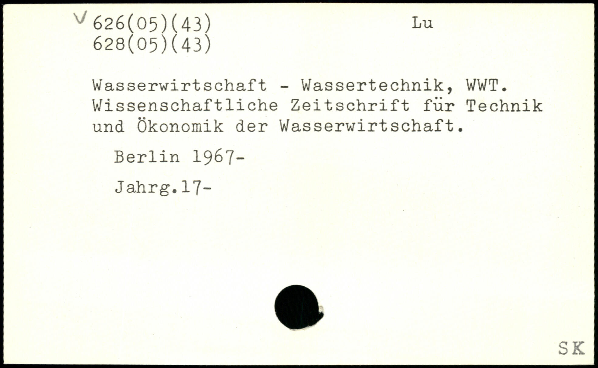 Wasserwirtschaft - Wassertechnik, WWT. Wissenschaftliche Zeitschrift für Technik und Ökonomik der Wasserwirtschaft.