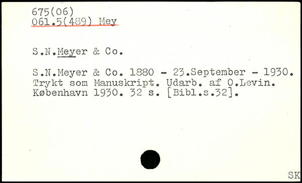 S.N.Meyer & Co. 1880 - 23.September - 1930. Trykt som Manuskript. Udarb. af 0.Levin.