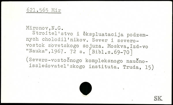 Stroitel'stvo i ekspluatacija podzera-nych cholodil'nikov. Sever i severo-vostok sovetskogo sojuza. Moskva,Izd-vo "Nauka",1967.