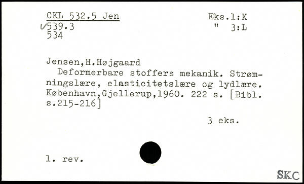 Jensen,H.Højgaard Heformerbare stoffers mekanik. Strømningslære, elasticitetslære og lydlære.