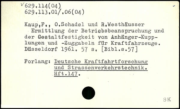KaupiF,, 0,Schädel und R,Westhäusser Ermittlung der Betriebsbeanspruchung und der Geetaltfestigkeit von Anhänger-Kupplungen und -2uggabeln für Kraftfahrzeuge. Düsseldorf 1961.