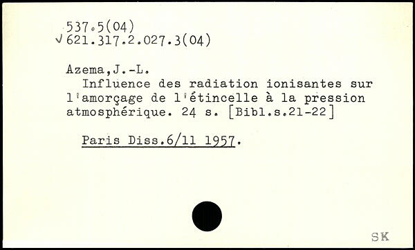 Influence des radiation ionisantes sur l'amorçage de Is étincelle à la pression atmosphérique.