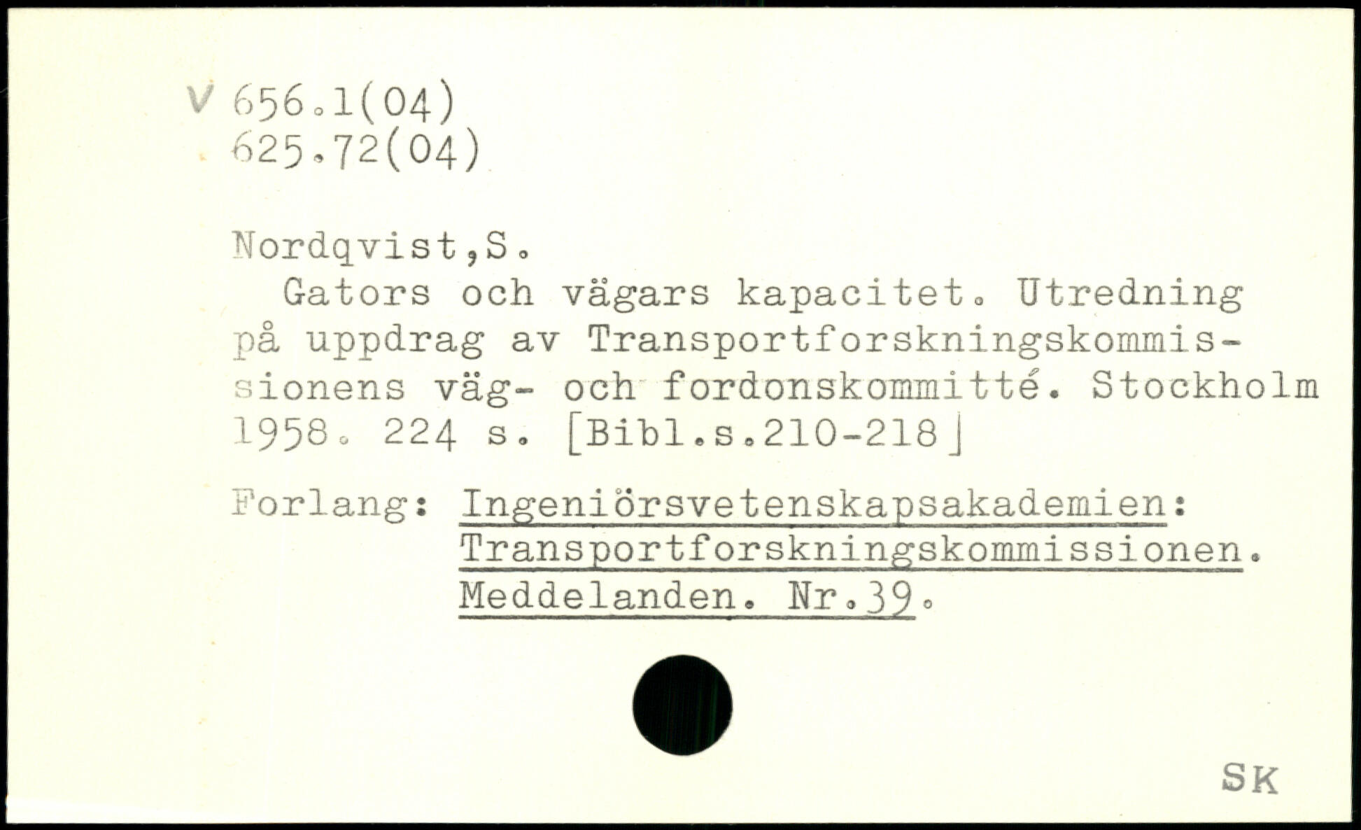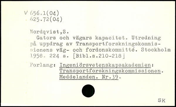 Gators och vägars kapacitet, Utredning på uppdrag av Transportforskningskommis-sionens väg- och fordonskommitté.