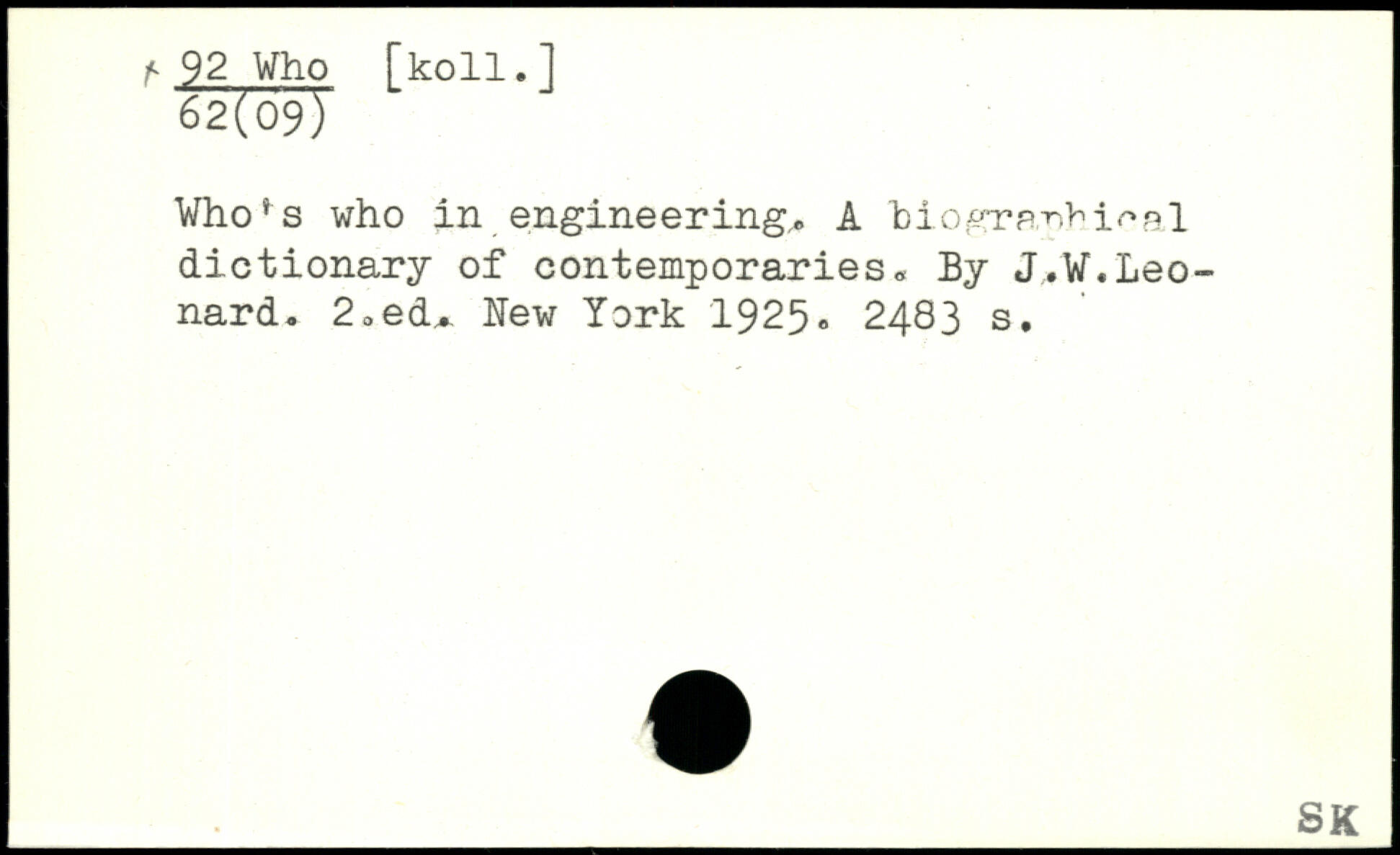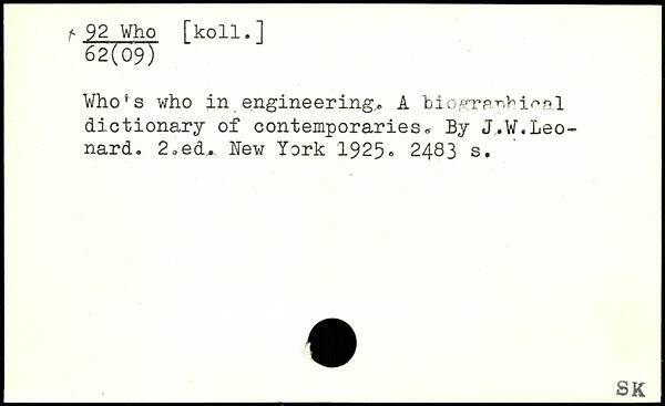 ^ 92 Who fkoll.] 62(09) Who's who in engineerings A hiogra-nM^al dictionary of contemporaries, By J.W.Leonard- 2-ed.