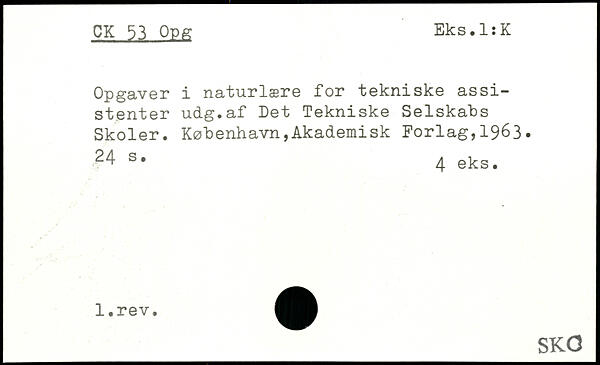 Opgaver i naturlære for tekniske assistenter udg.af Det Tekniske Selskabs Skoler.