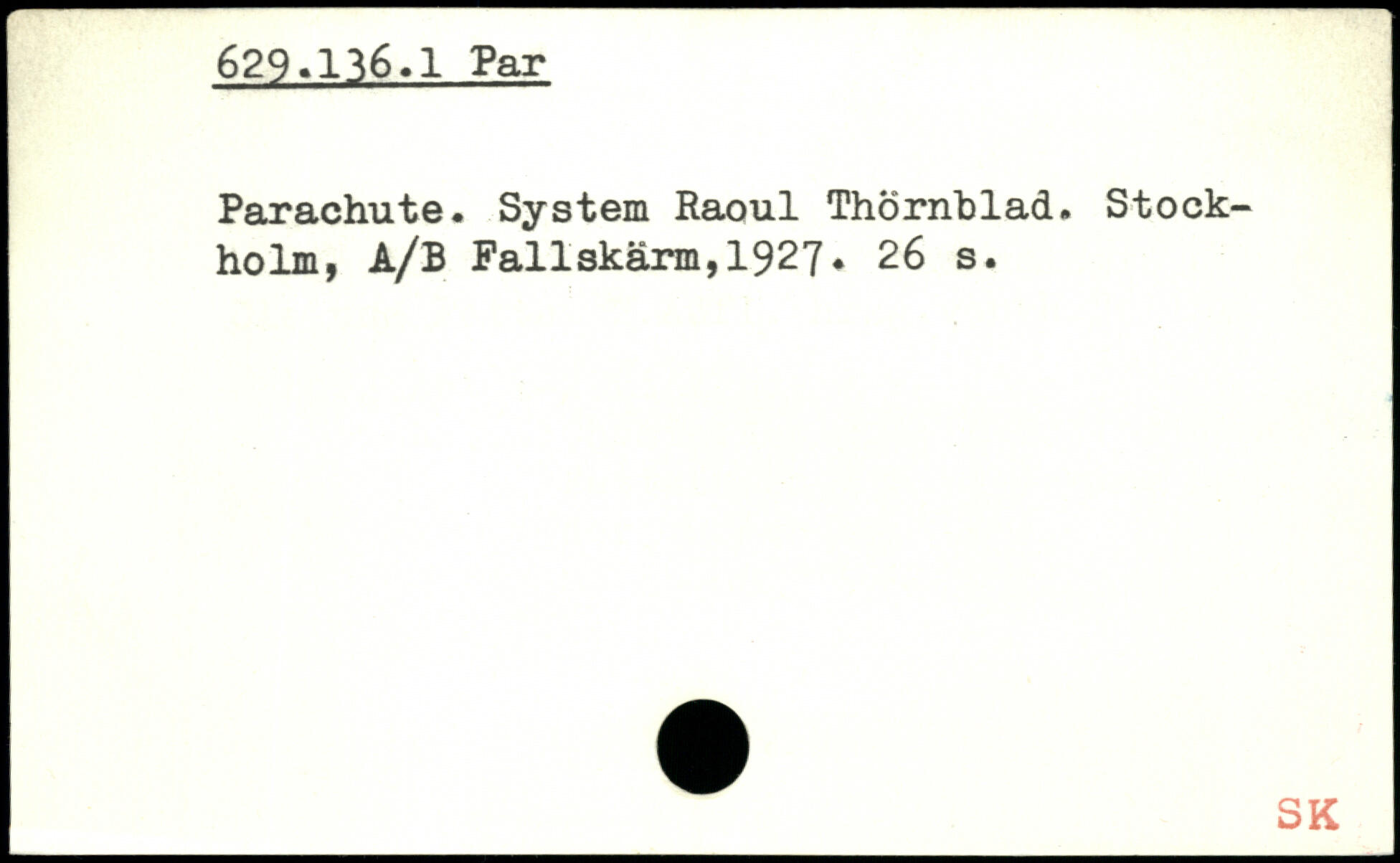 Parachute. System Raoul Thörnblad.