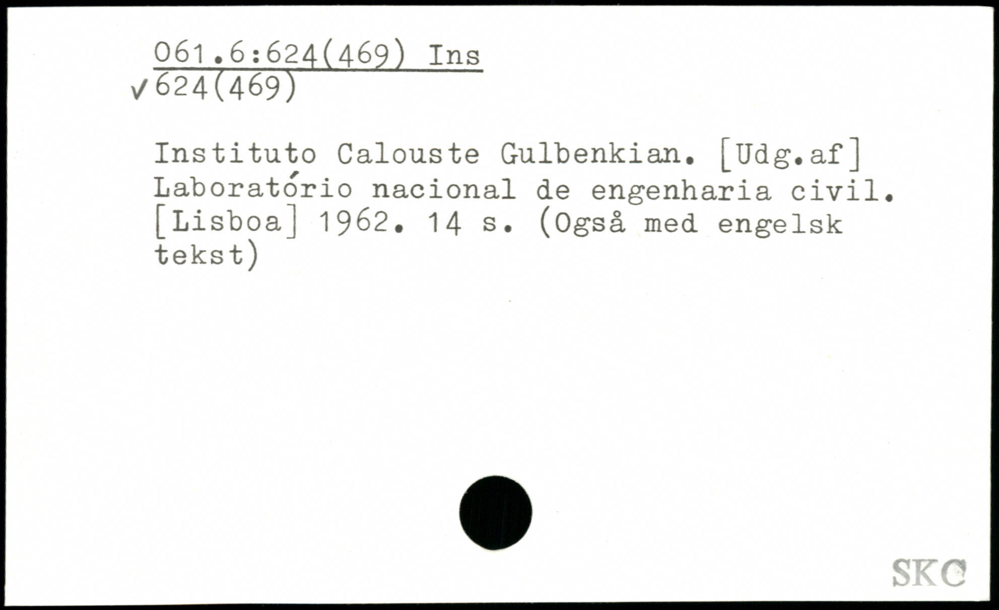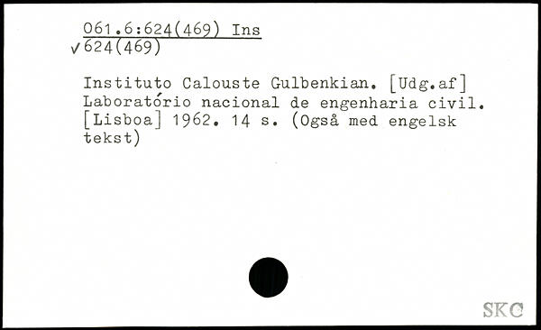 Instituto Calouste Gulbenkian. [Udg.af] Laboratorio nacional de engenharia civil. [Lisboa] 1962.