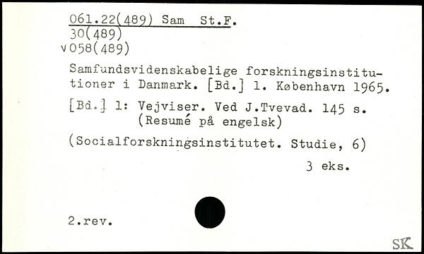 Samf andsvidenskabelige forskningsinstitu— tioner i Danmark. [Bd.] 1.