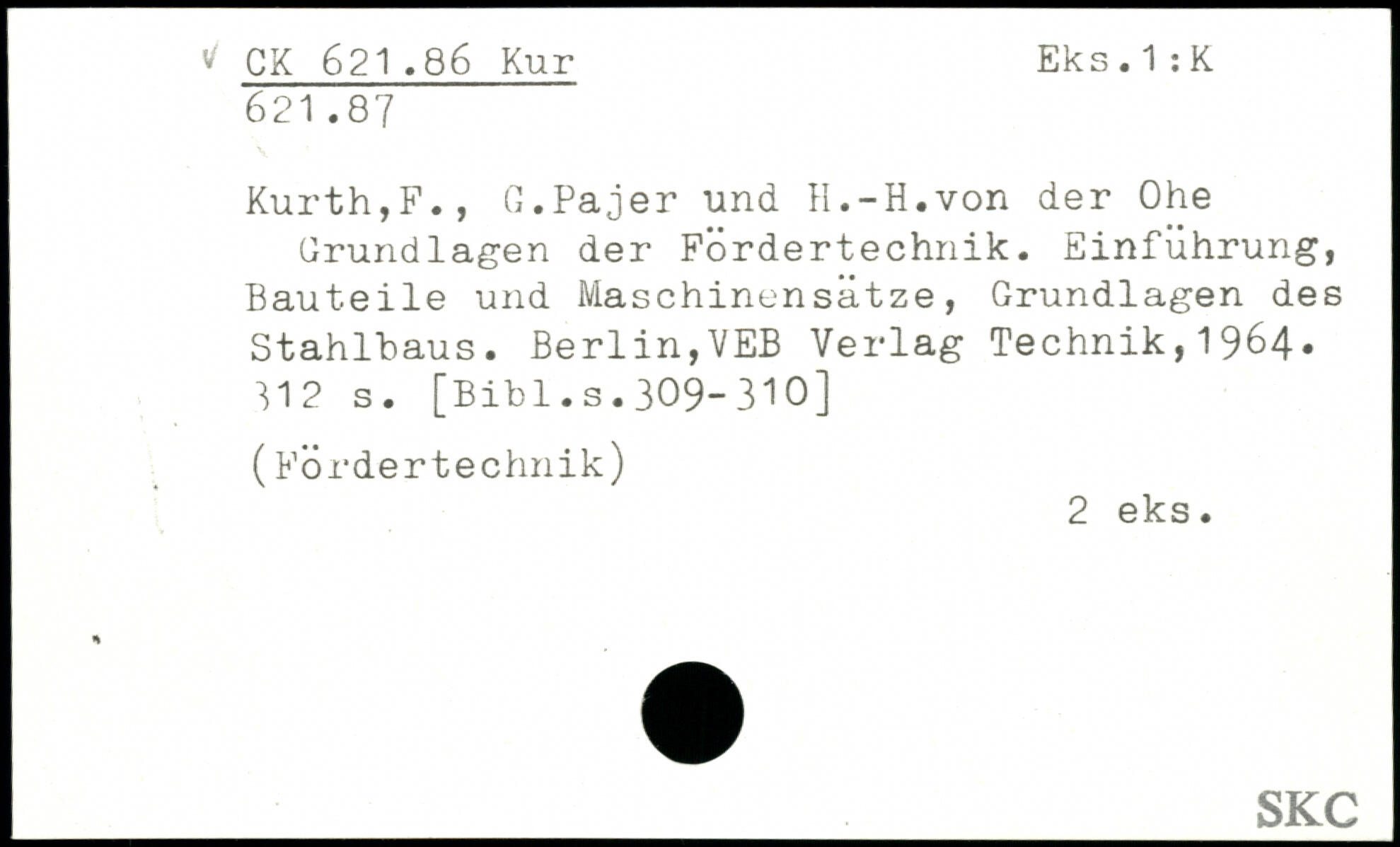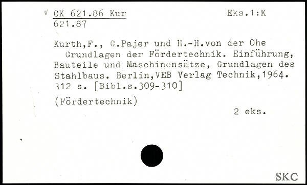 Kurth,F., G.Pajer und II.-H.von der Ohe Grundlagen der Fördertechnik. Einführung, Bauteile und Maschinensatze, Grundlagen des Stahlbaus.