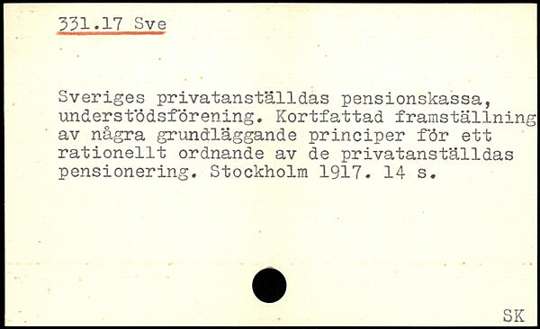 Sveriges privatanstalIdas pensionskassa, understödsförening. Kortfattad framställning av några grundläggande principer för ett rationellt ordnande av de privatanställdas pensionering.