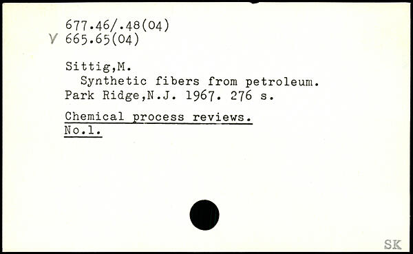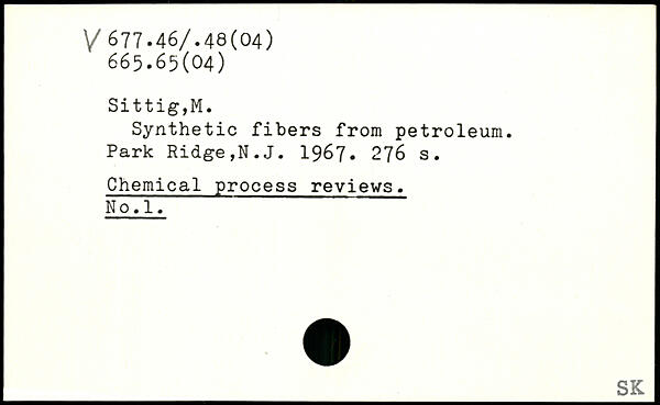 Synthetic fibers from petroleum. Park Ridge,N.J. 1967.
