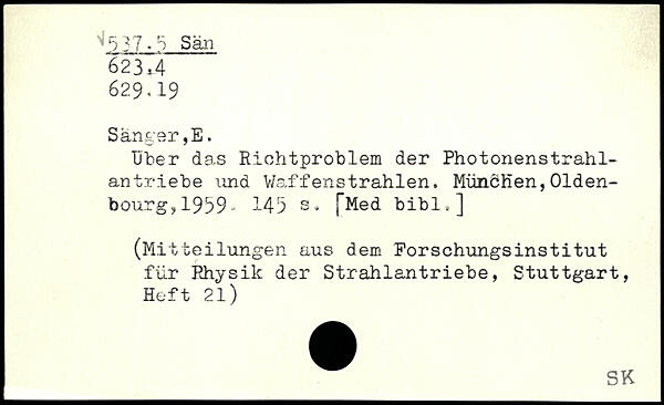 über das Richtproblem der Photonenstrahlantriebe und Vaffenstrahlen. Münô