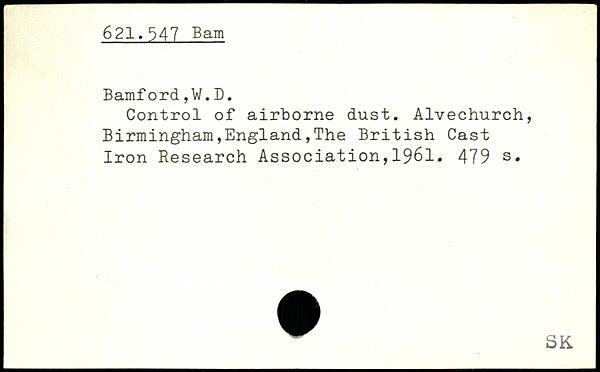 Control of airborne dust. Alvechurch, Birmingham,England,The British Cast Iron Research Association,1961.