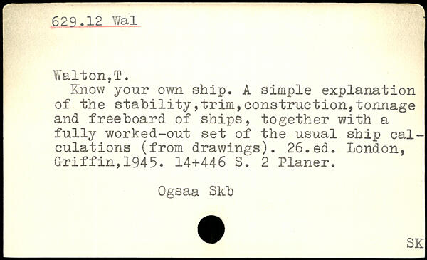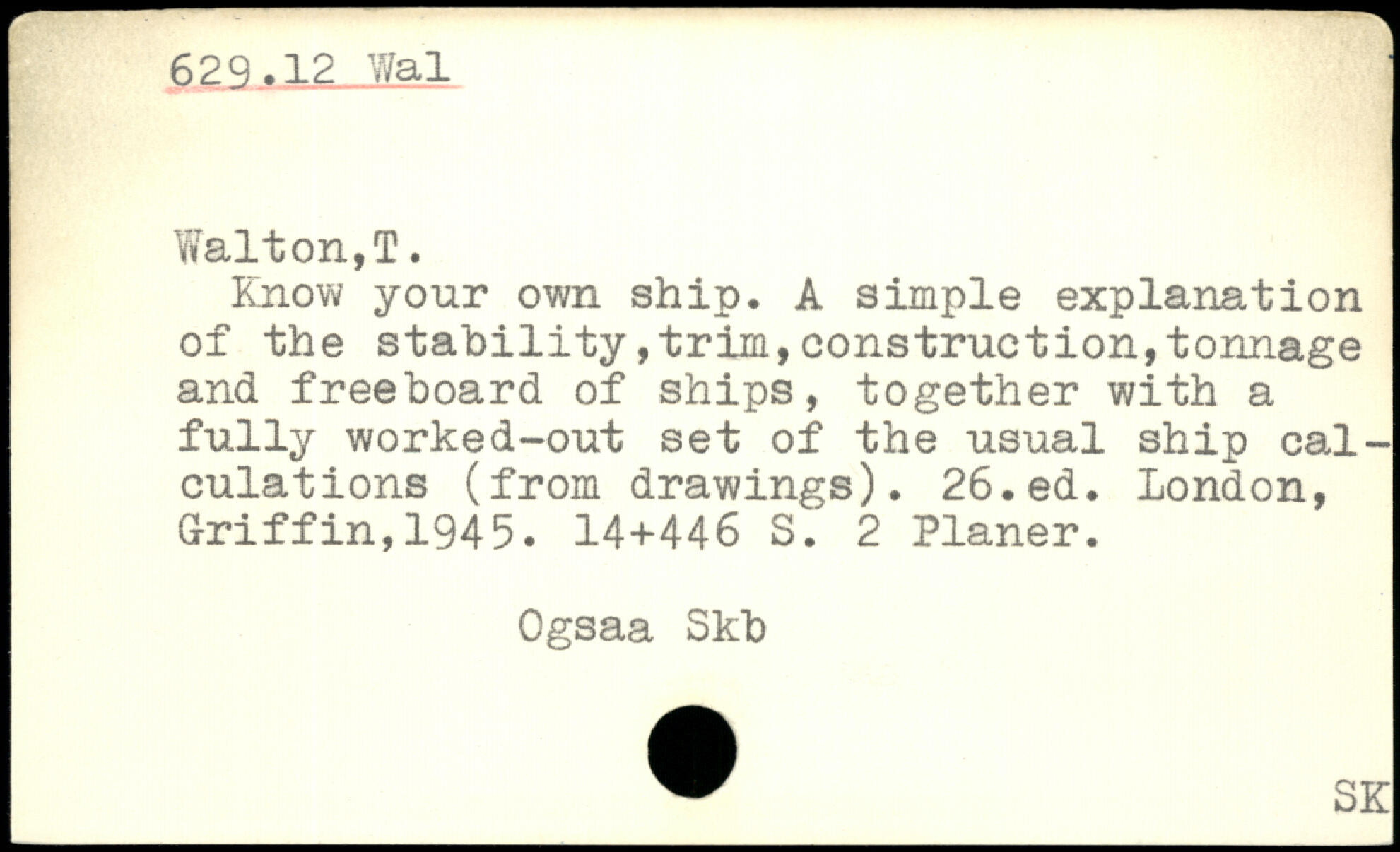 Know your own ship. A simple explanation of the stability,trim,construction,tonnage and freeboard of ships, together with a fully worked-out set of the usual ship calculations (from drawings).