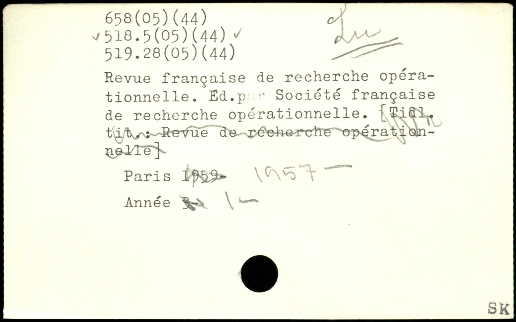 Revue française de recherche opérationnelle. Ed.p r Société française de recherche opérationnelle. [Sid1. ~ de -r-é^eh^rTrh'e’^crp^ratioin- Paris tffg. ' Année \